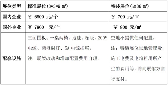展位规格及收费标准